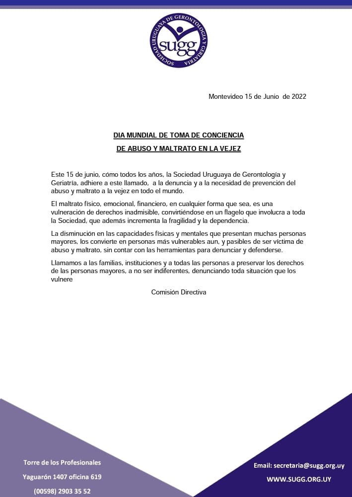 Mensaje de la SUGG en el marco del Día mundial de toma de conciencia del abuso y maltrato en la vejez