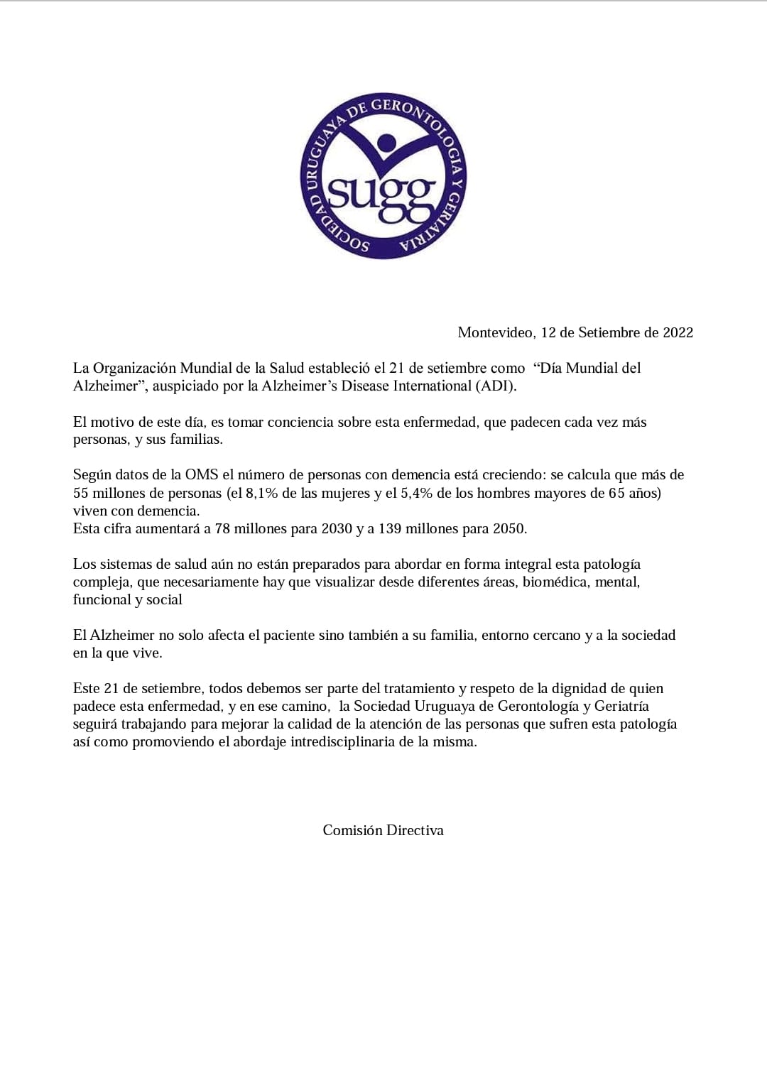 Comunicado de la SUGG en relación al Día mundial del Alzheimer