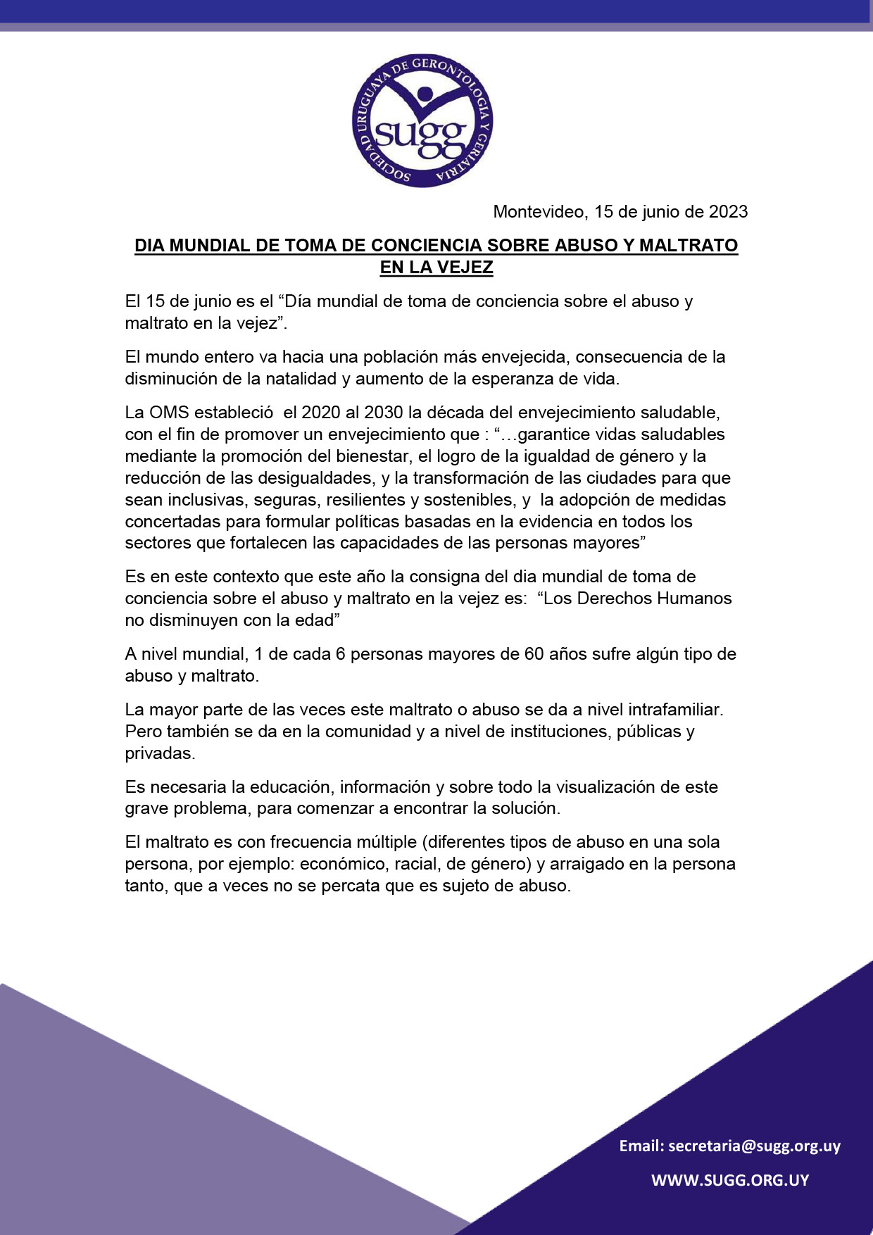 Día mundial de toma de conciencia sobre el abuso y maltrato en la vejez