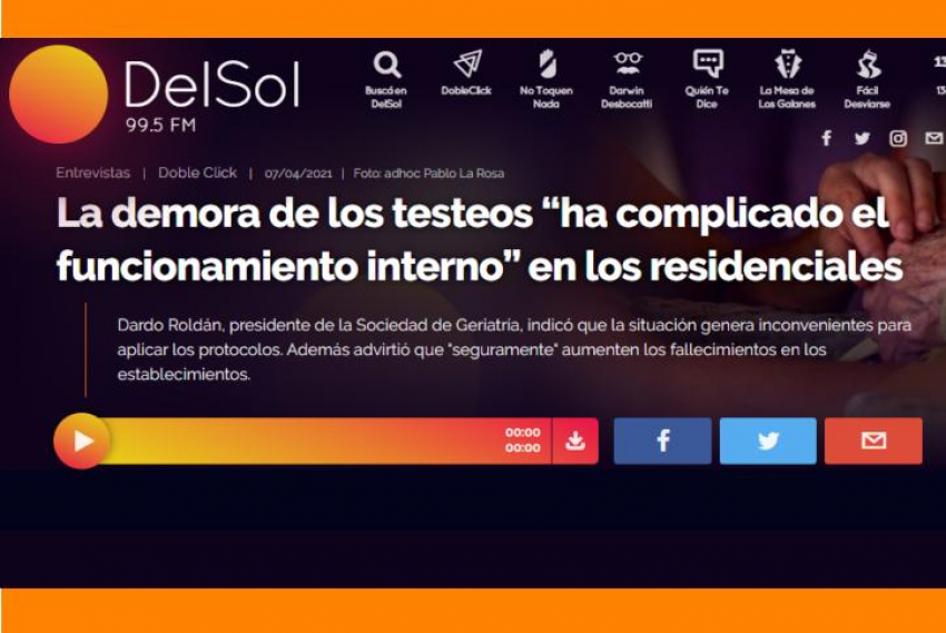 Dr. Dardo Roldán en FM DEL SOL: La demora de los testeos "ha complicado el funcionamiento interno" en los residenciales.