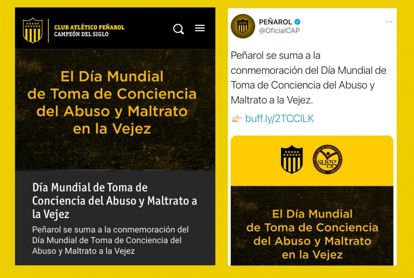 Peñarol se suma a la conmemoración del Día Mundial de Toma de Conciencia del Abuso y Maltrato a la Vejez.