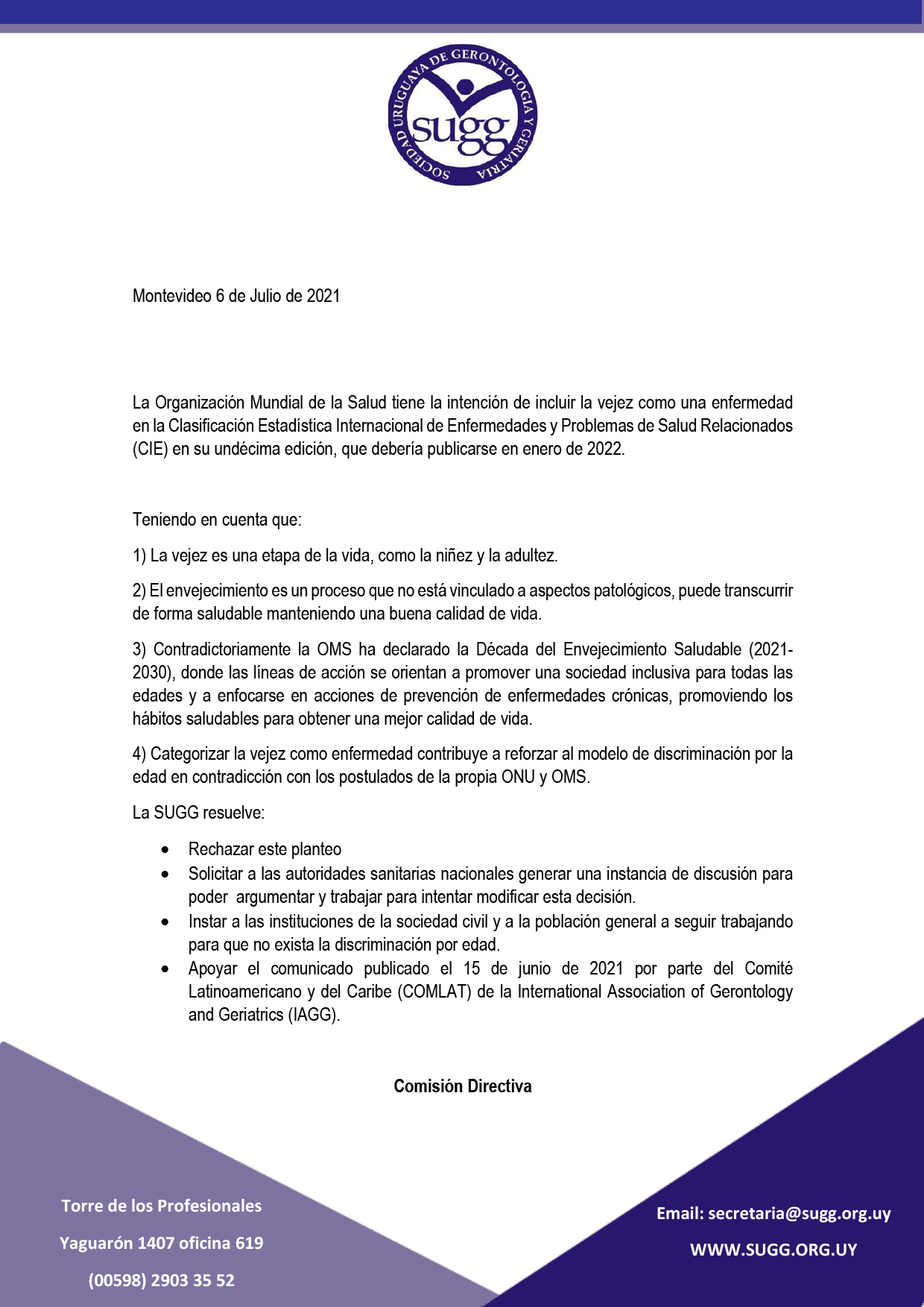 Resolución de la SUGG en relación a postura de la Organización Mundial de la Salud